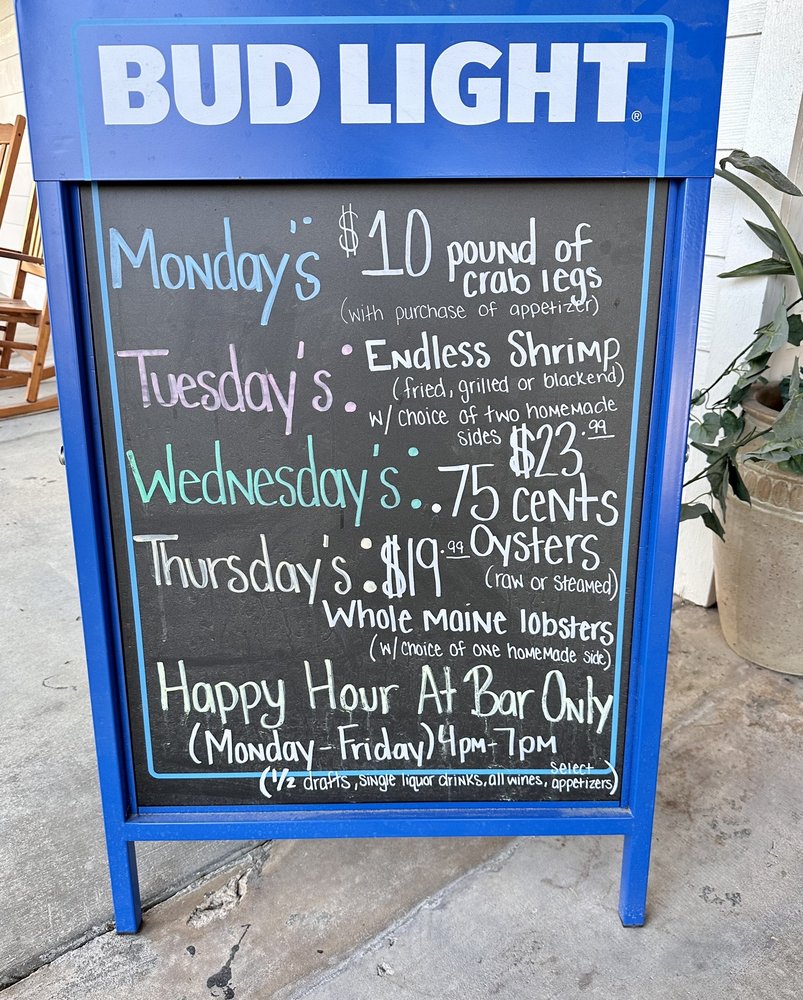 Fresh local shrimp, gulf select oysters, cold water scallops, fresh fish and house-made stuffed deviled crab.